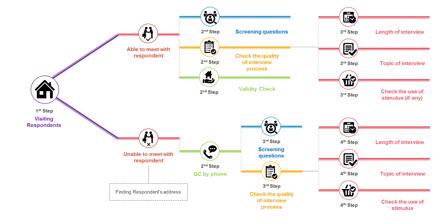 To obtain a good quality respondents, we implement a QC process gradually. Here is our Quantitative QC process flow :